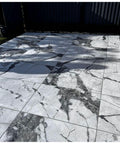 Introducing Castille Cirrus, an outdoor porcelain tile in a pristine white base, featuring streaks in varying shades of blue to create a stunning marble effect. This striking design adds elegance to any outdoor space and will really add that wow factor.
