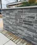 Ordino Black 80 x 442mm is a sleek porcelain wall cladding tile combining deep charcoal and mid-grey tones in a natural layered stone effect. The slim linear format and subtle texture create a modern, contemporary look that adds depth and contrast to any space. Perfect for feature walls, outdoor fireplaces, garden seating areas and stylish façades, Ordino Black delivers a sophisticated, architectural finish with the durability and low maintenance of porcelain.