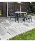 Kandla Grey is a premium Indian sandstone paving with a beautifully textured riven surface, predominantly in elegant shades of grey, accented by subtle buff-brown tones. Its natural variation adds depth and character, making it a versatile choice for any landscaping design. Available in generous 900 x 600mm slabs, sold individually, it offers both style and practicality for your outdoor space.
