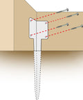 A purpose designed bracket used to secure the corner of a single layer of railway sleepers.